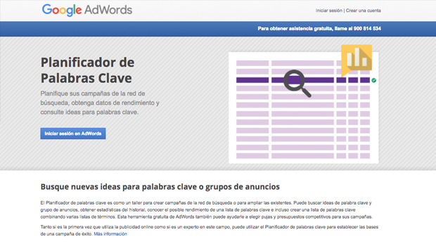 Paso 3. Identificar vuestras Keyword. Importante realizar una investigación de keyword básica con el Planificador de Palabras clave de Google Adwords. Esto económicamente os costará el tiempo que dediquéis a analizar necesidades y proponer soluciones a través de resultados de búsqueda.