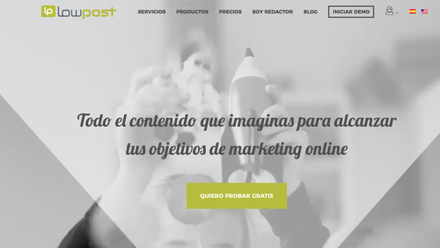 Paso 4. Generación de contenidos. La primera recomendación que tu seas la persona que genera el contenido, dado que eres el que mejor conoces el proyecto. Si no te ves con tiempo o con energía puedes pedir ayuda para que colaboren en el proyecto. Otra opción interesante puede ser tirar de una plataforma como LowPost para que te ayuden a generar el contenido bajo precios bastante competitivos y resultados bastante buenos.